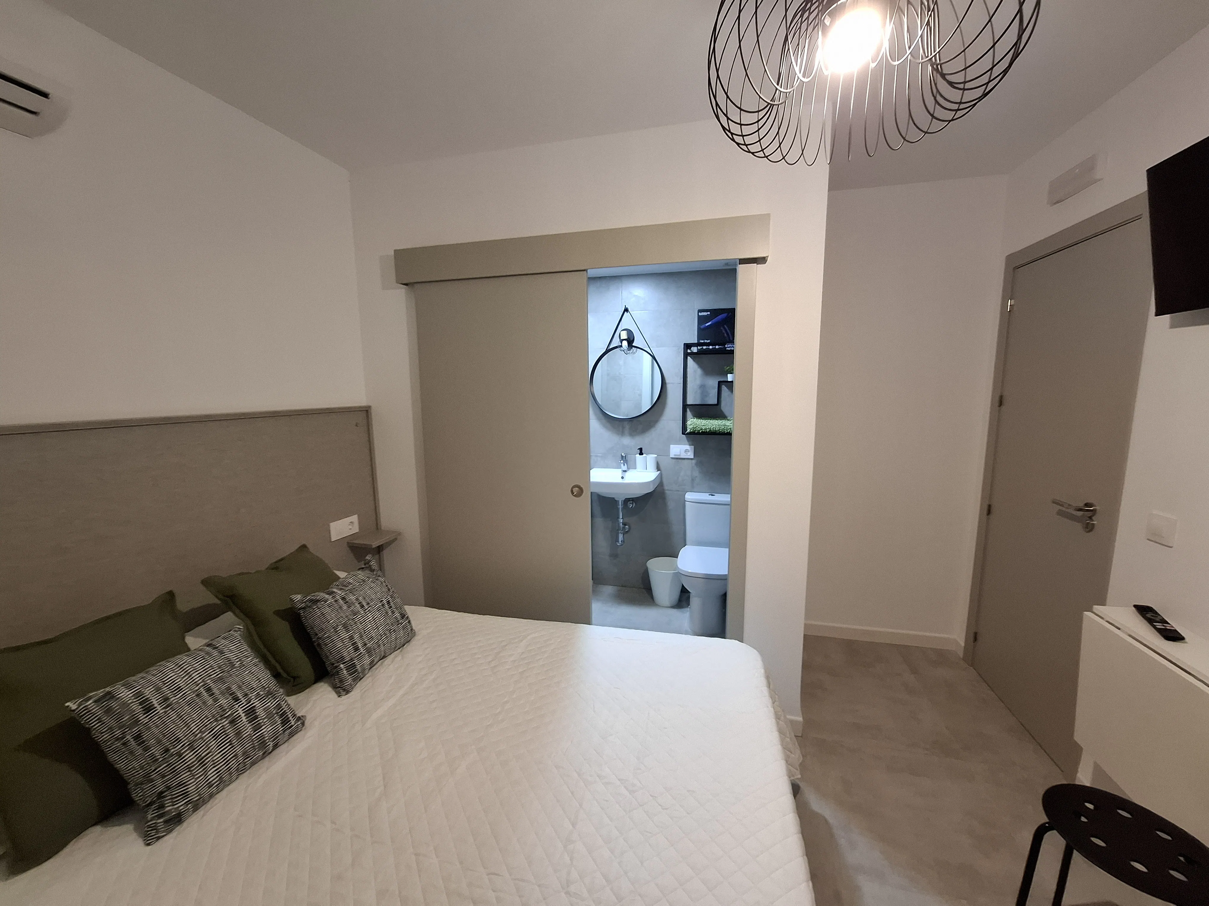 This double room includes air conditioning, soundproofing and a private bathroom with a shower. It is equipped with one bed.